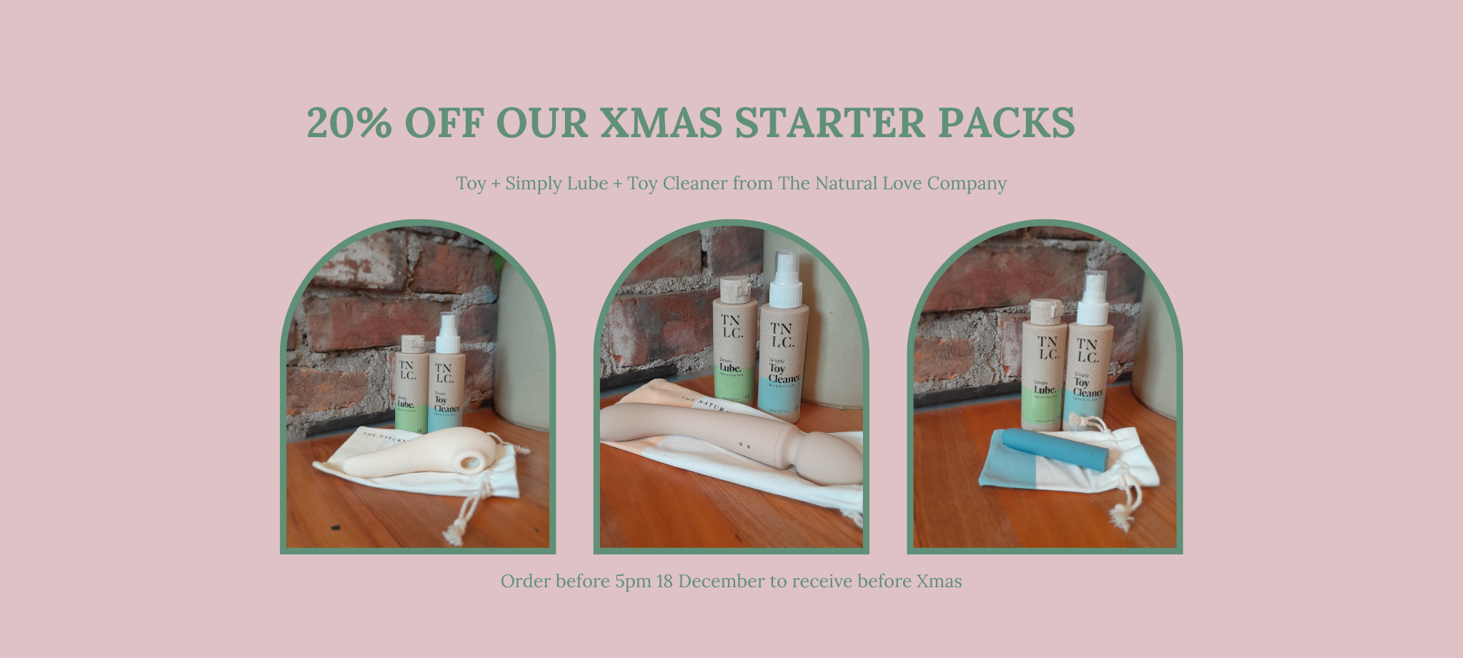 We offer a shopping experience that doesn't feel "porny" and which gives you the option to make more environmentally conscious choices for your bedroom play. We stock toys from The Natural Love Company, love.not war and Womanizer plus a range of sexual wellbeing products.